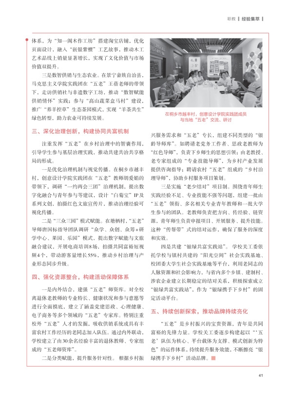 注重发挥“五老”在乡村治理中的智囊作用,引导学生参与基层治理实践,推动共建共治共享格局的形成。